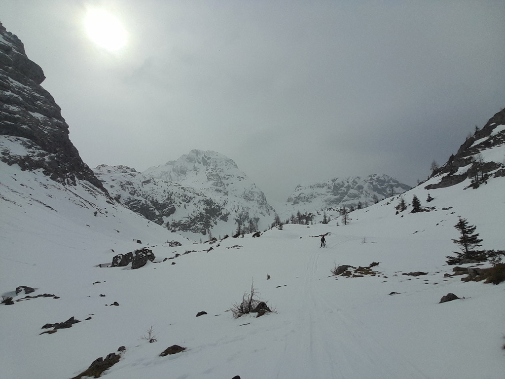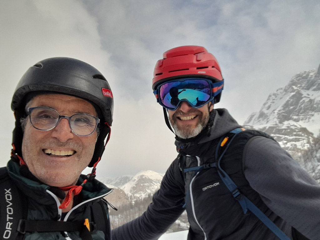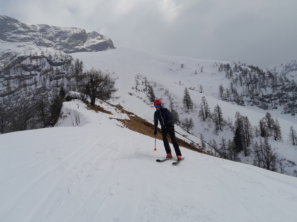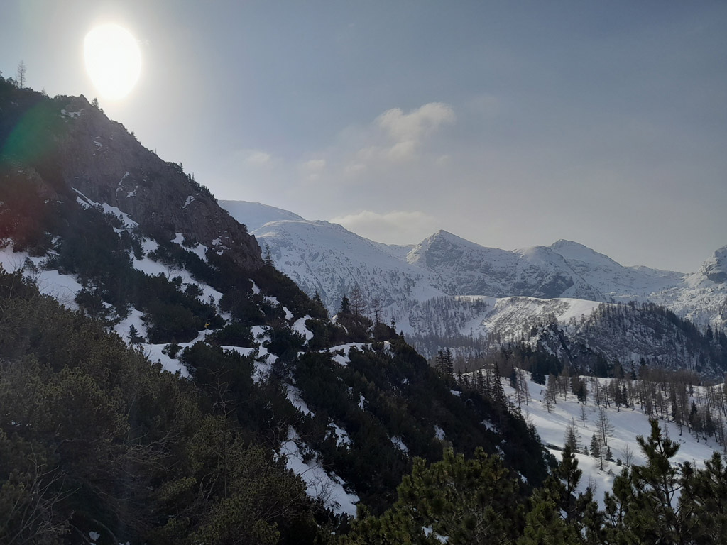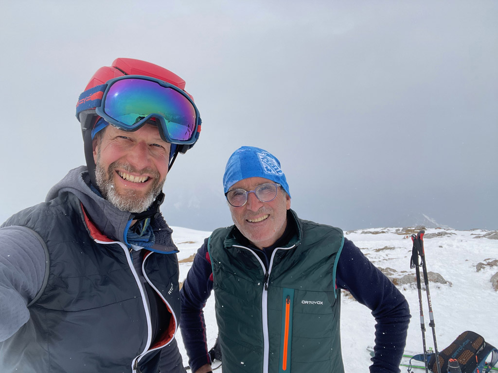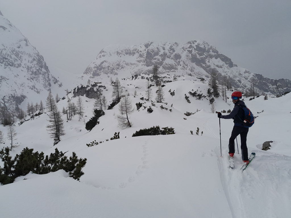 Programmgemäß ging's am 21.03.2026 auf eine Fortgeschrittenen-Skitour zur Kleinen Reibn. Startpunkt war der Parkplatz Hinterbrand. Ab der Jenner Mittelstation lag genug Schnee, um auf die Ski zu wechseln. Abwechslungsreich präsentierte sich der Aufstieg zum Stahlhaus. Von dort ging es auf griffigem Schnee hoch zum Schneibstein (2276 m). Die Abfahrt, nördlich am Windschartenkopf vorbei, gestaltete sich wegen der unterschiedlichen Schneeverhältnisse technisch interessant. Besonders beeindruckend war die einsame, winterliche Gebirgslandschaft zwischen Hochseeleinkopf und Fagstein. Nach der obligaten Pause am Brotzeitfelsen querten wir zu den Rossfeldern bis auf 1975 m. Die Abfahrt zu den Priesbergalmen gelang problemlos, teilweise war sogar Pulverschnee geboten. Ab der Enzianbrennerei mussten die Ski dann wieder geschultert und über den Königsweg zurück getragen werden. Eine wunderbare und abwechslungsreiche Tour, zurecht ein Klassiker der Berchtesgadener Alpen!